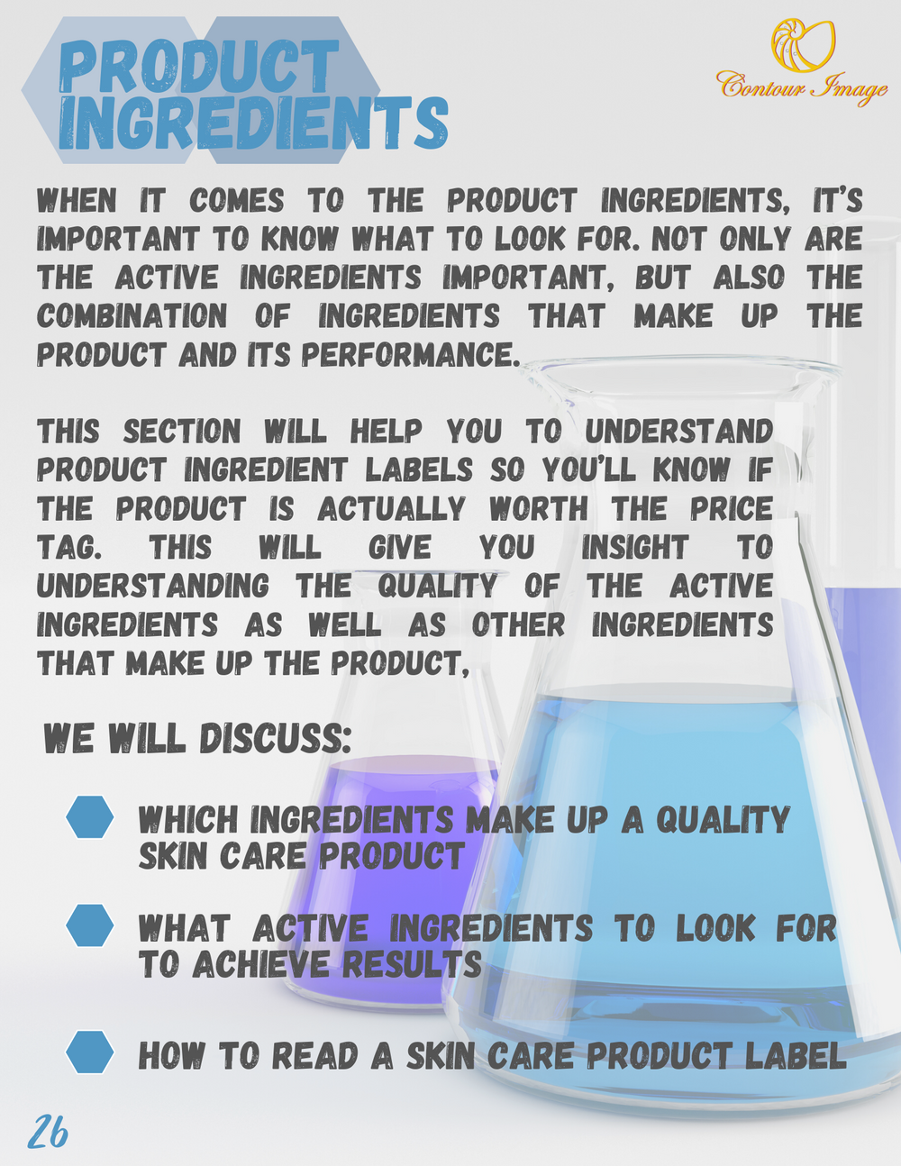 - Identify common skin care ingredients and understand their function.